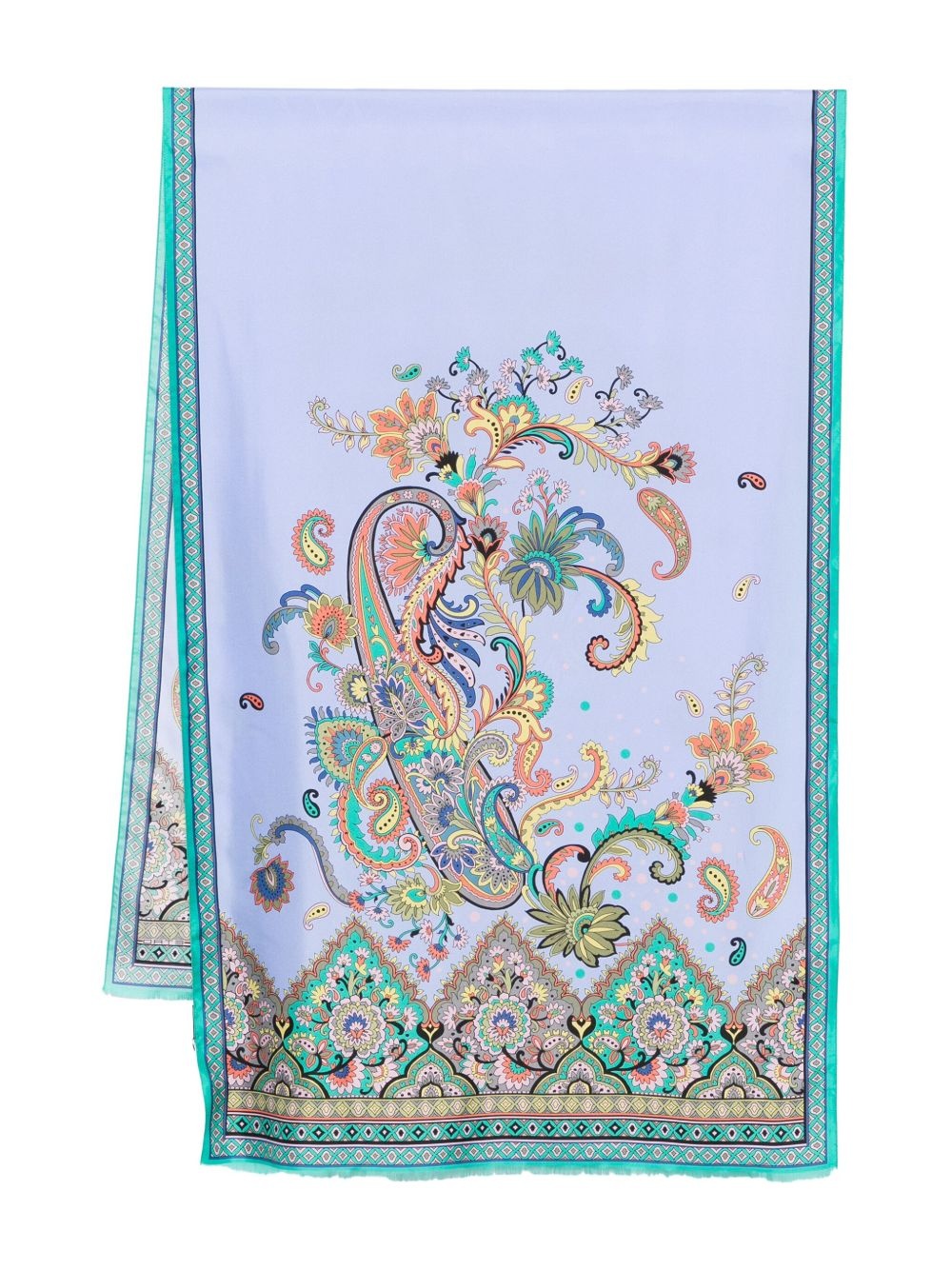 paisley-print scarf Highlights - Turquoise blue-green - Frayed edge - Rectangle shape Made in Italy Composition Silk 100% SIZE & FIT Measurement LENGTH 77.16 in(196 cm) WIDTH 26.37 in(67 cm)