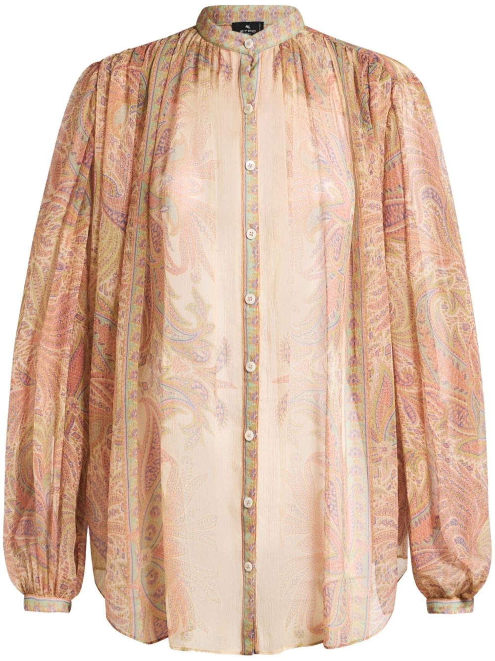 paisley-print shirt Highlights - Beige - Front button fastening - Pleat detailing - Band collar - Balloon sleeves Made in Italy Composition Fabric 100%