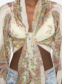 paisley-print silk cape Highlights - Light green - Front tie fastening - Three-quarter length sleeves - Semi-sheer construction Made in Italy Composition Silk 100% SIZE & FIT Model measurements Height 5 ft 11 in(1.8 m) Bust/Chest 32.67 in(83 cm) Hips 36.22 in(92 cm) Waist 24.4 in(62 cm) FittingInformation Designed to be unstructured, offering a loose fit throughout The tie fastening gives an adaptable and personalised fit Made from a lightweight non-stretch fabric