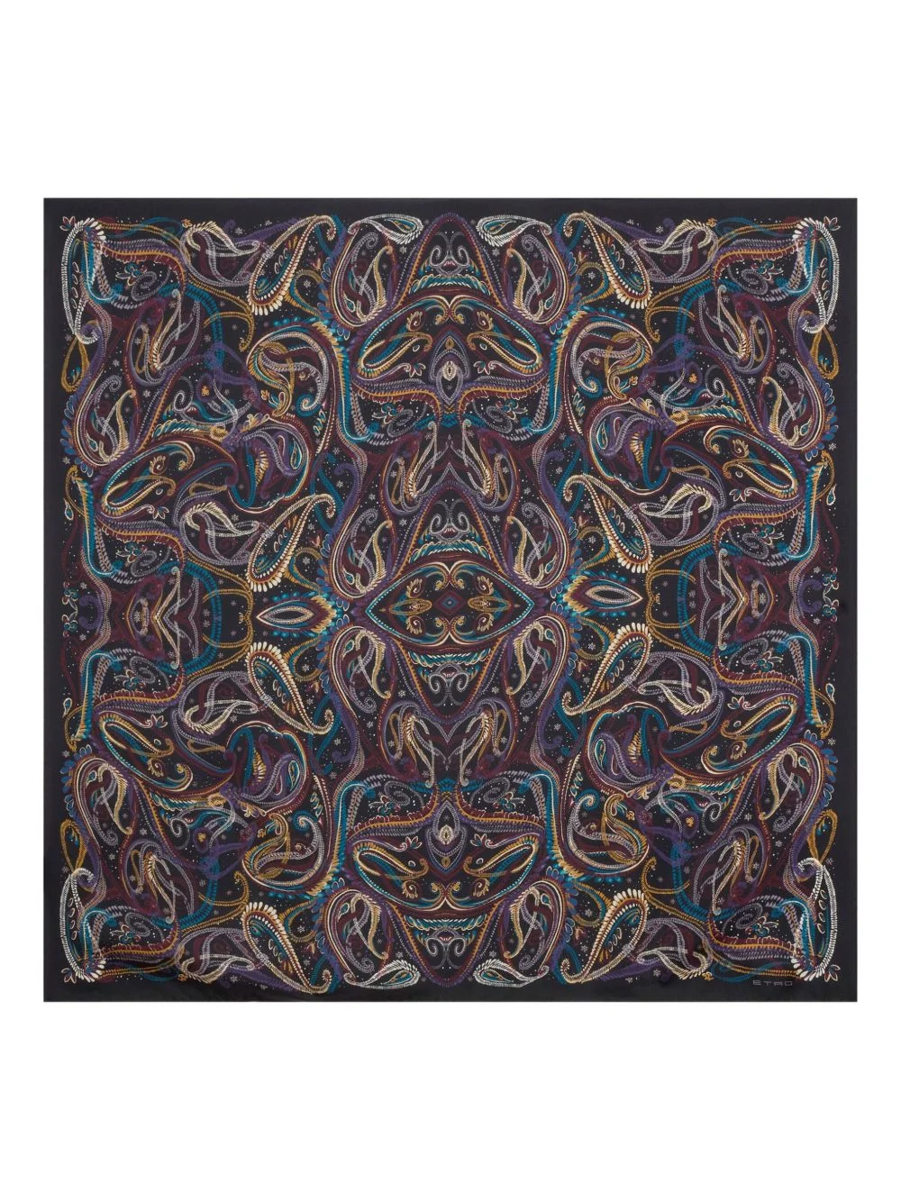 SILK SCARF WITH PAISLEY FOLIAGE MOTIF
