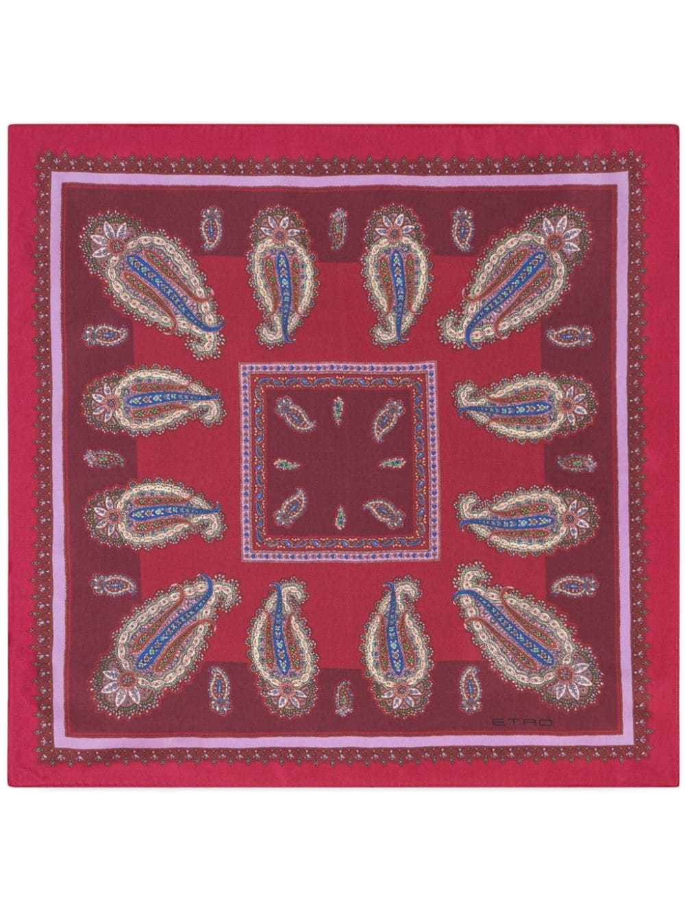 paisley-print silk scarf paisley-print silk scarf from ETRO featuring dark red, multicolour, silk, paisley print, logo print to the side, square shape and wraparound style. Made in Italy Composition Silk 100% SIZE & FIT Measurement LENGTH 16.92 in(43 cm) WIDTH 16.92 in(43 cm)