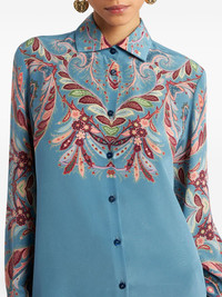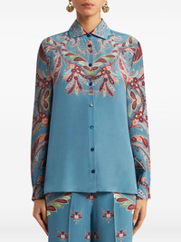 paisley-print silk shirt Highlights - Teal blue - Front button fastening - Paisley print - Long sleeves - Buttoned cuffs Made in Italy Composition Silk 100% Washing instructions Read Manufacturer Guidelines