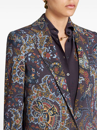 paisley-print single-breasted blazer Highlights - Black - Paisley print - Notched lapels - Front button fastening - Jetted chest pocket - Two side flap pockets - Long sleeves - Buttoned cuffs - Straight hem Made in Italy Composition Viscose 95%, Elastane 5% Washing instructions Read Manufacturer Guidelines