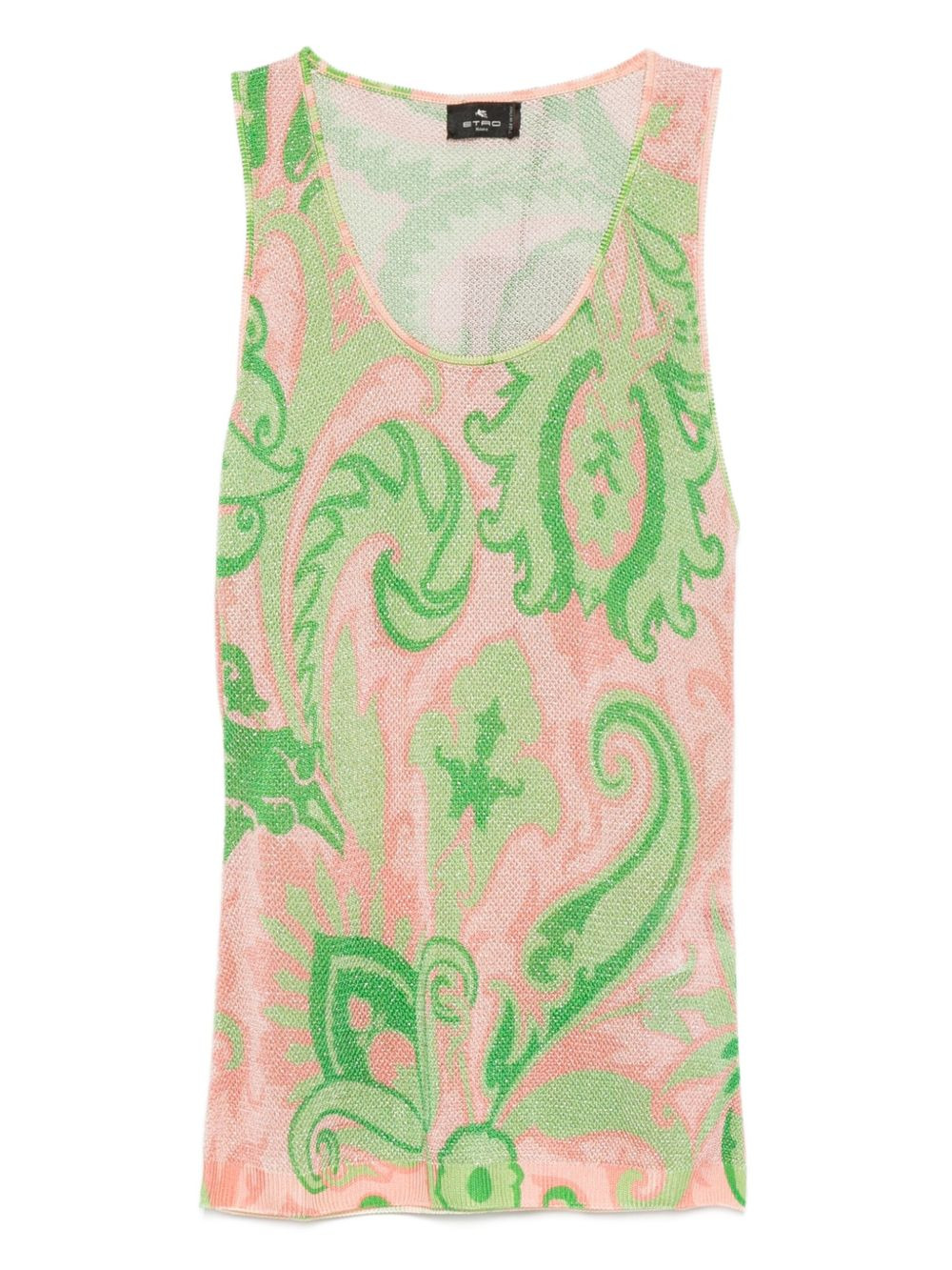 paisley-print sleeveless top Highlights - Green - Paisley print - Sleeveless design - Round neck - Slim fit - Knitted fabric Made in Italy Composition Viscose 96%, Metallised Fibres 4% SIZE & FIT Model measurements Height 5 ft 10 in(1.79 m) Bust/Chest 31.88 in(81 cm) Hips 35.43 in(90 cm) Waist 23.62 in(60 cm) Washing instructions Dry Clean Only