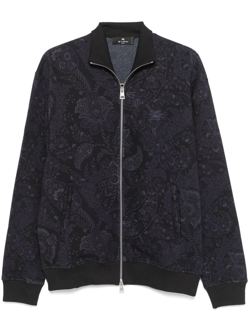paisley-print sweatshirt Highlights - Navy blue - Cotton blend - Jersey texture - Paisley print - Front two-way zip fastening - High neck - Long sleeves - Ribbed trim - Signature pegaso motif at the chest - Two side slit pockets Made in Italy Composition Cotton 92%, Nylon 8% SIZE & FIT Model measurements Height 6 ft 2 in(1.87 m) Bust/Chest 36.41 in(92.5 cm) Hips 37 in(94 cm) Waist 29.52 in(75 cm) FittingInformation Designed for a regular fit, offering a comfortable loose fit throughout the body The ribbed hem offers a close, comfortable fit Made from a midweight non-stretch fabric, this piece offers minimal elasticity when worn