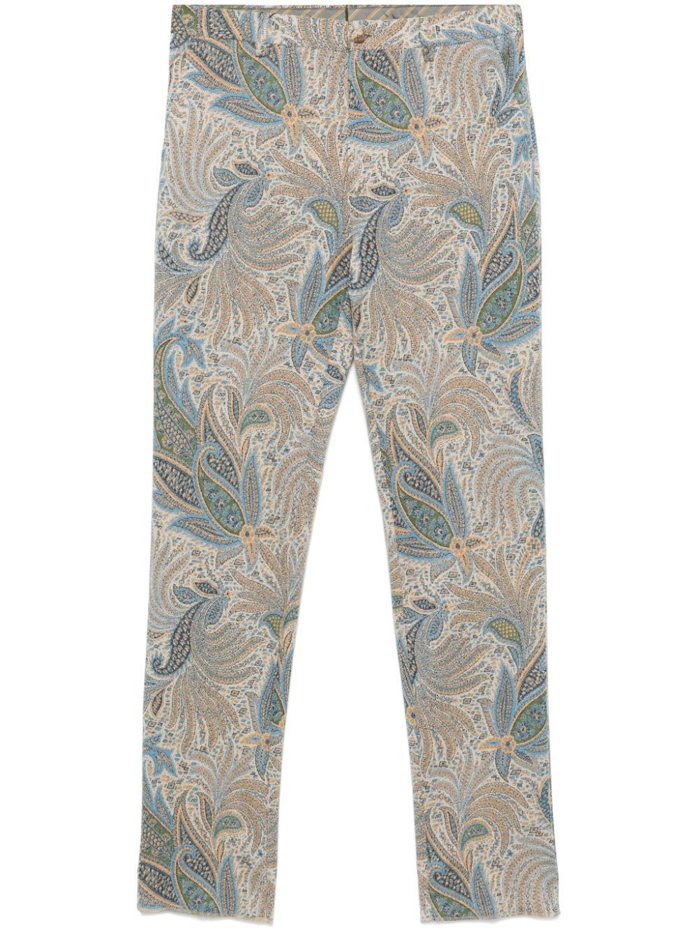 paisley-print tapered trousers Highlights - Cerulean blue - Front button and zip fastening - Belt loops - Two side inset pockets - Two rear button-fastening jetted pockets Made in Italy Composition Polyester 54%, Viscose 21%, Cotton 21%, Polyamide 3%, Elastane 1% SIZE & FIT Model measurements Height 6 ft 2 in(1.87 m) Bust/Chest 37.79 in(96 cm) Hips 37.79 in(96 cm) Waist 30.31 in(77 cm) FittingInformation Designed for a slim tapered leg, offering a close fit that sits just away from the leg with a closer fit towards the ankle Made from a midweight stretch fabric, this piece offers elasticity and flexibility when worn