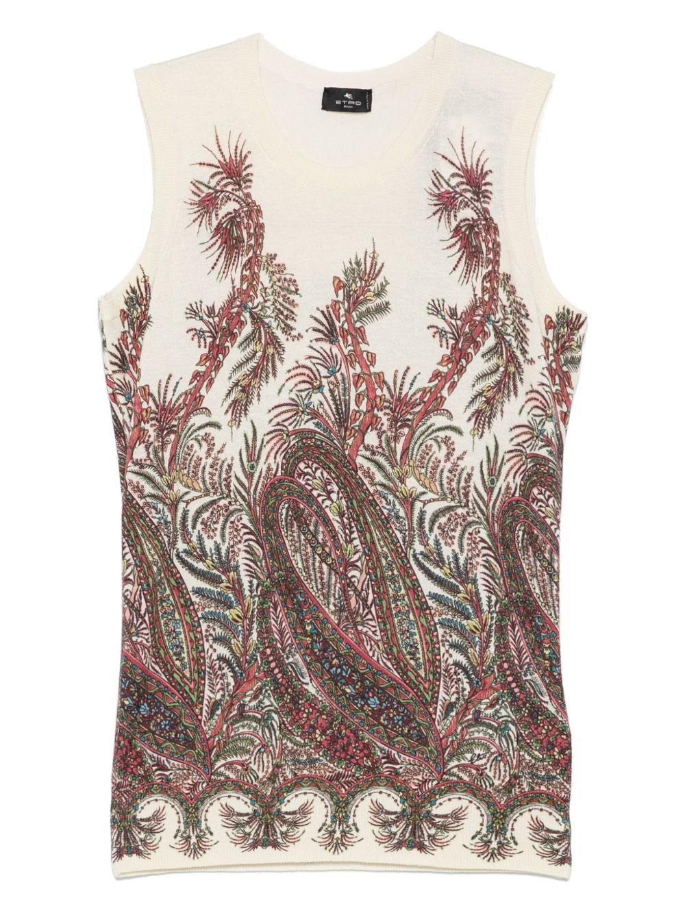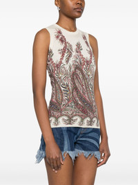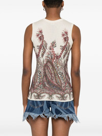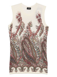 paisley-print top Highlights - Ecru - Crew neck - Sleeveless - Straight hem Made in Italy Composition Silk 55%, Cashmere 45% SIZE & FIT Model measurements Height 5 ft 11 in(1.8 m) Bust/Chest 31.49 in(80 cm) Hips 36.61 in(93 cm) Waist 24.4 in(62 cm) FittingInformation Designed for a close fit throughout Made with a lightweight knit, this piece offers some stretch Washing instructions Dry Clean Only