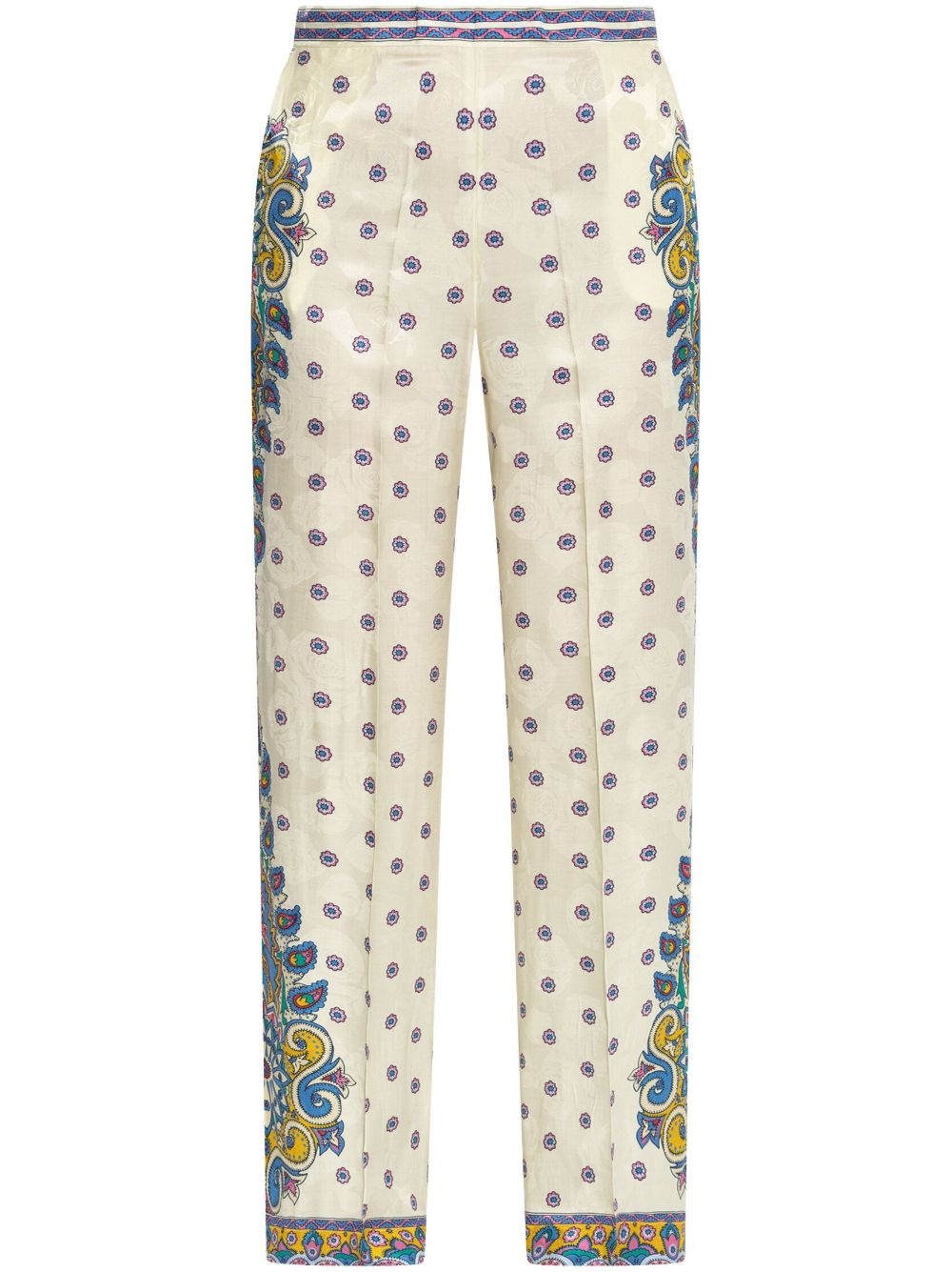 paisley-print trousers Highlights - Cream white - High-waisted - Two diagonal pockets to the sides - Paisley print - Slim cut Made in Italy Composition Viscose 65%, Silk 35%