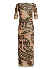 paisley-print tulle maxi dress Highlights - Beige/multicolour - Tulle overlay - Paisley print - V-neck - Half-length sleeves - Ankle-length - Straight hem Made in Italy Composition Polyamide 100% Washing instructions Read Manufacturer Guidelines