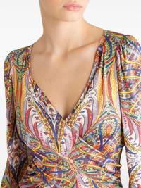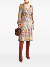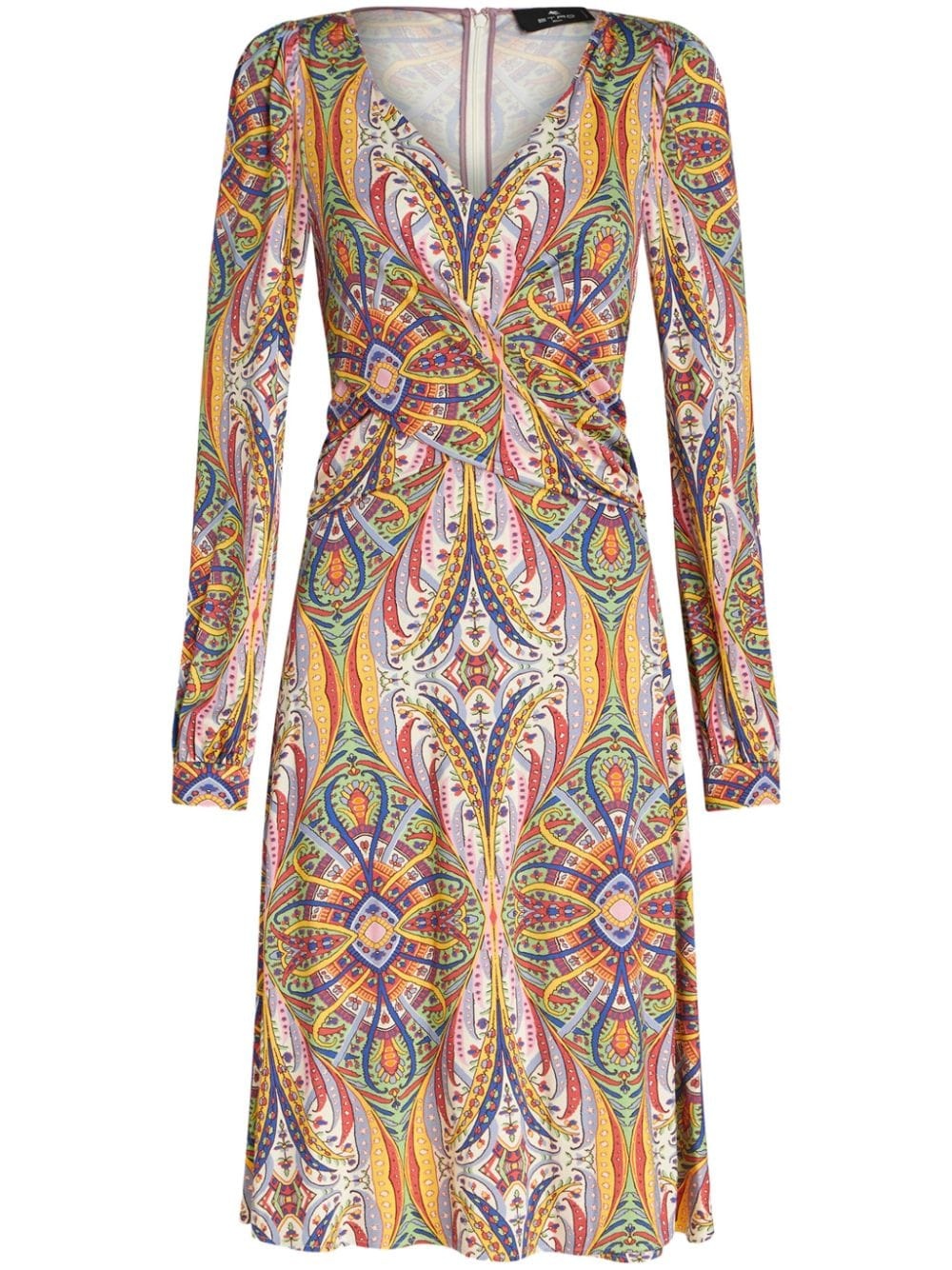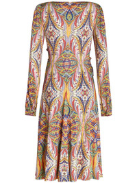 paisley-print V-neck midi dress Highlights - White/multicolour - Paisley print - V-neck - Long sleeves - Buttoned cuffs - Flared skirt - Below-knee length - Concealed rear zip fastening - Straight hem Made in Italy Composition Viscose 96%, Spandex/Elastane 4% Washing instructions Read Manufacturer Guidelines