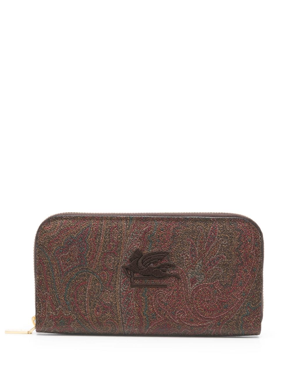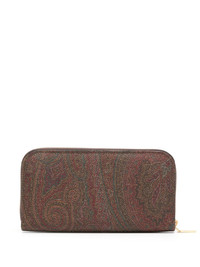 paisley-print wallet Highlights - Chestnut brown/multicolour - Cotton blend - Paisley print - Textured finish - Signature pegaso motif - Partitioned compartment - Internal zip-fastening pocket - 12 internal card slots - Two internal note compartments - Logo-jacquard lining - All-around zip fastening Made in Italy Composition Lining: Nylon 100%, Calf Leather 100% Outer: Calf Leather 100%, Cotton 76%, Polyester 24% SIZE & FIT Measurement DEPTH 0.98 in(2.5 cm) LENGTH 7.48 in(19 cm)
