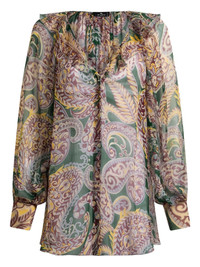 paisley ruffled shirt Highlights - Dark green - Paisley pattern - Ruffled neckline - Button fastening - Long sleeves - Balloon sleeves Made in Italy Composition Outer: Silk 100% Lining: Polyester 100% Washing instructions Read Manufacturer Guidelines