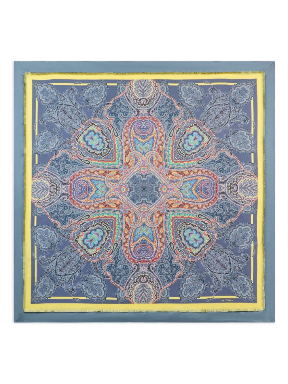 paisley scarf Highlights - Blue - Contrasting border - Fringed edge - Square shape Made in Italy Composition Silk 100% SIZE & FIT Measurement LENGTH 35.43 in(90 cm) WIDTH 35.43 in(90 cm)