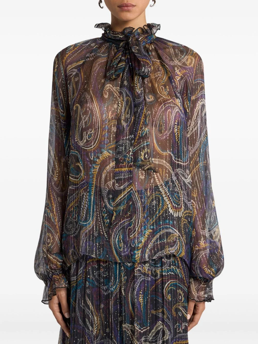 SILK BLOUSE WITH PAISLEY FOLIAGE MOTIF