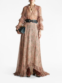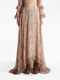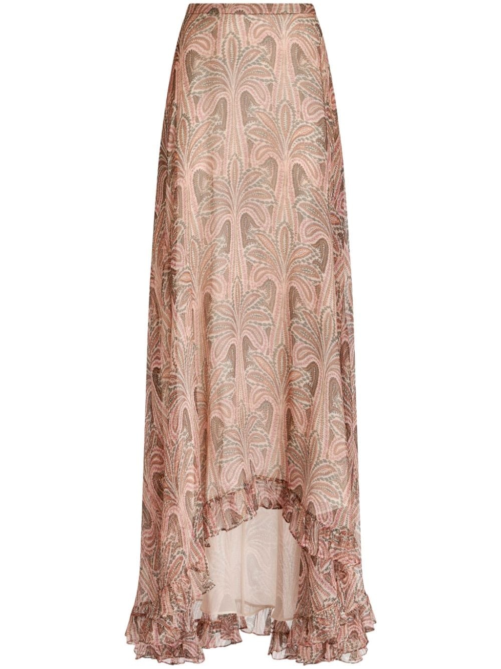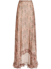palm tree-print silk maxi skirt Highlights - Peach pink/multicolour - Silk - Palm tree print - High waist - Concealed rear zip fastening - Ruffle high-low hem - Floor-length Made in Italy Composition Outer: Silk 100% Lining: Polyester 100% Washing instructions Dry Clean Only