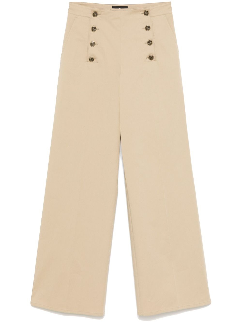 panel-detail trousers Highlights - Archive beige - Front button fastening - Front hook and eye fastening - Two side slash pockets - Two rear patch pockets Imported Composition Cotton 97%, Elastane 3% SIZE & FIT Model measurements Height 5 ft 10 in(1.78 m) Bust/Chest 33.46 in(85 cm) Hips 36.22 in(92 cm) Waist 23.22 in(59 cm) FittingInformation Designed with a wide-leg cut, these trousers allow for a close fit at the waist and offer a loose and roomy fit over the leg Made from a midweight stretch fabric, this piece offers elasticity and flexibility when worn