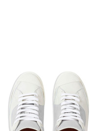 panelled leather sneakers Highlights - White/light grey - Calf suede - Calf leather - Panelled design - Round toe - Contrasting rubber toecap - Front lace-up fastening - Pull-tab at the heel - Branded insole - Rubber outsole Made in Italy Composition Sole: Elastodiene 100% Outer: Calf Suede 100%, Calf Leather 100% Lining: Polyamide 100%