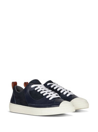 panelled leather sneakers Highlights - Midnight blue - Calf suede/calf leather - Contrasting laces - Panelled design - Round toe - Contrasting rubber toecap - Front lace-up fastening - Pull-tab at the heel - Branded insole - Contrasting rubber sole Made in Italy Composition Sole: Elastodiene 100% Outer: Calf Leather 100%, Calf Suede 100% Lining: Polyamide 100%