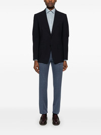 pattern-jacquard trousers Highlights - Ocean blue/multicolour - Front button and zip fastening - Patterned jacquard - Belt loops - Two diagonal pockets to the sides - Pressed crease - Two rear button-fastening jetted pockets - Straight leg Made in Italy Composition Cotton 38%, Viscose 34%, Polyester 24%, Polyamide 3%, Elastane 1% SIZE & FIT Model measurements Height 6 ft 2 in(1.88 m) Bust/Chest 36.61 in(93 cm) Hips 35.82 in(91 cm) Waist 27.95 in(71 cm) FittingInformation Designed for a slim fit, offering a comfortable fit that sits just away from the leg The unfinished hems allow for the length to be altered Made from a midweight stretch fabric, this piece offers elasticity and flexibility when worn Washing instructions Hand Wash