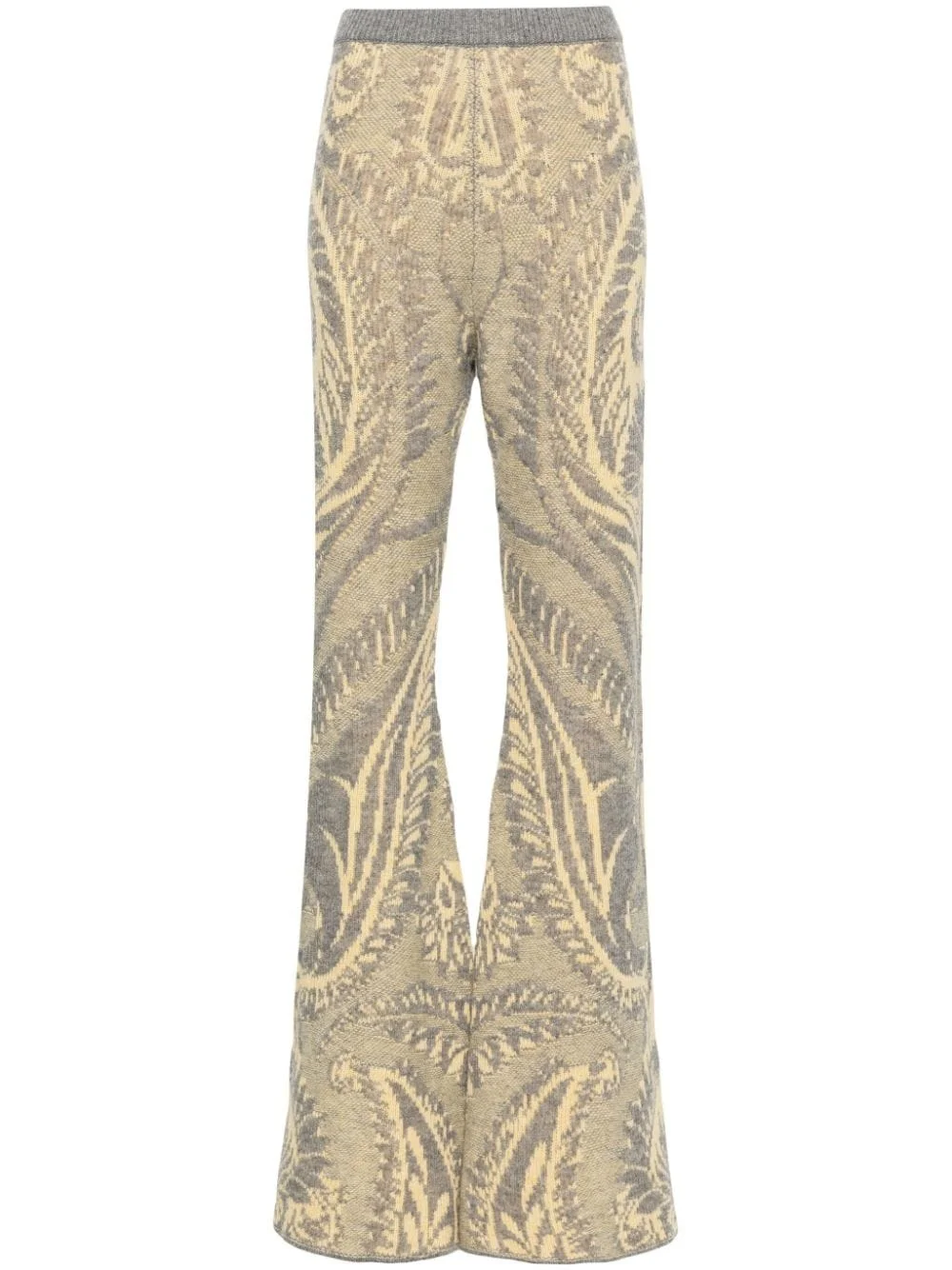 patterned-intarsia trousers Highlights - Yellow/grey - Wool - Patterned intarsia knit - Ribbed waistband - Flared hem Made in Italy Composition Wool 100% SIZE & FIT Model measurements Height 5 ft 10 in(1.77 m) Bust/Chest 31.1 in(79 cm) Hips 34.64 in(88 cm) Waist 24.01 in(61 cm) FittingInformation Designed with a flared hem, these trousers allow for a close fit at the waist with a slim fit over the leg and widening towards the hem The elasticated waist allows for a comfortable fit Made with a midweight knit, this piece offers some stretch
