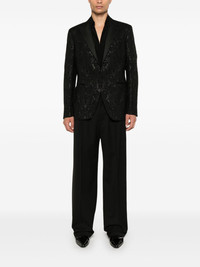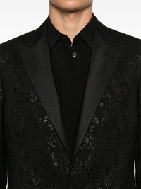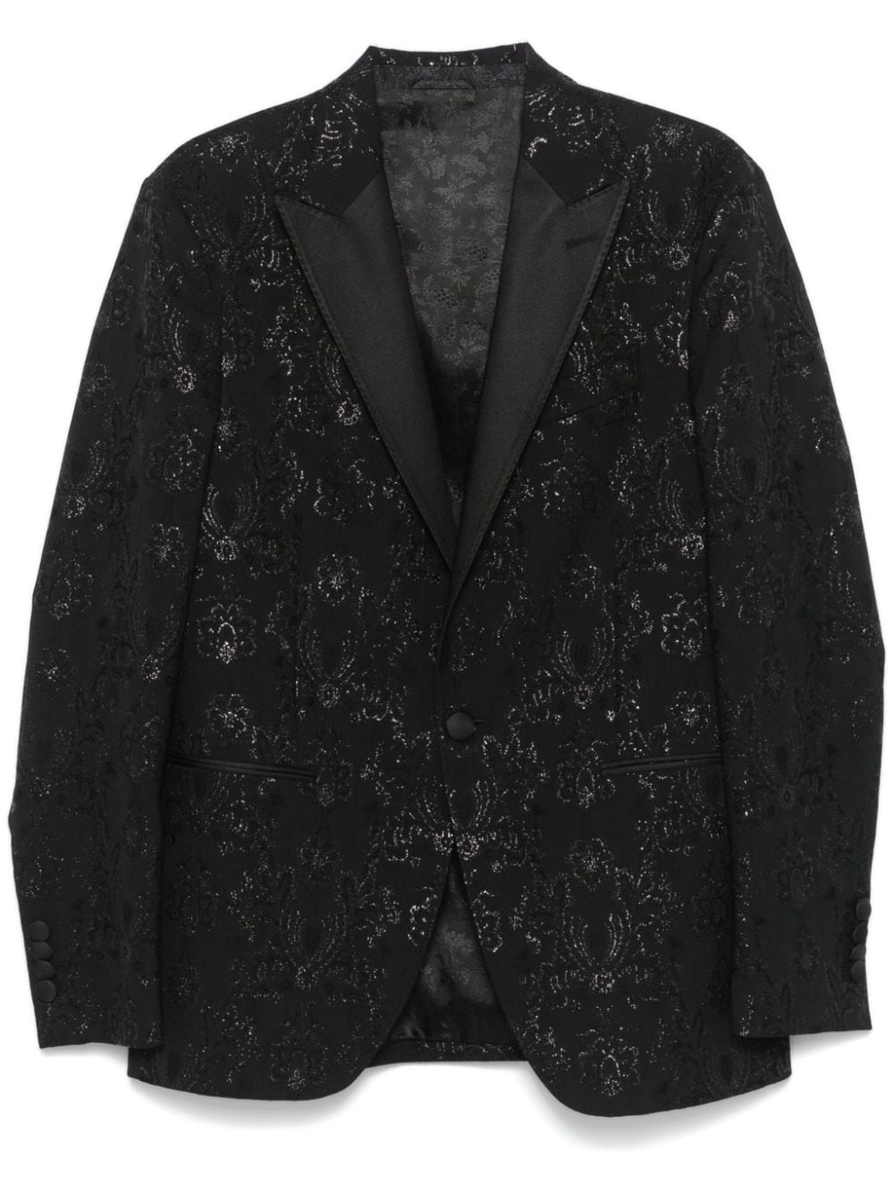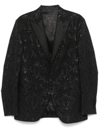 patterned-jacquard blazer Highlights - Black - Wool-cotton blend - Patterned jacquard - Front button fastening - Lurex detailing - Satin peak lapels - Shoulder pads - Long sleeves - Faux-buttoned cuffs - Chest welt pocket - Dart detailing - Two front jetted pockets - English rear vents - Internal jetted pockets - Patterned-jacquard lining - Curved hem Made in Italy Composition Outer: Wool 84%, Silk 78%, Polyester 22%, Cotton 11%, Metallic Fibre 3%, Elastane 2% Lining: Viscose 100% SIZE & FIT Model measurements Height 6 ft 1 in(1.85 m) Bust/Chest 35.82 in(91 cm) Hips 37.79 in(96 cm) Waist 29.13 in(74 cm) FittingInformation Designed for a slim fit, offering a comfortable fit that sits just away from the body The internal shoulder pads offer a structured shape Made from a midweight fabric