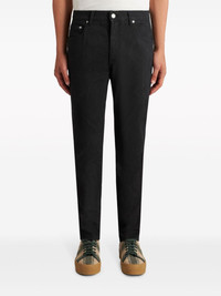 patterned-jacquard slim-cut jeans Highlights - Black - Cotton blend - Denim - Patterned jacquard - Logo patch to the rear - Belt loops - Slim cut - Button fly fastening - Classic five pockets Made in Italy Composition Cotton 56%, Polyester 41%, Elastane 3% Washing instructions Read Manufacturer Guidelines