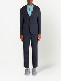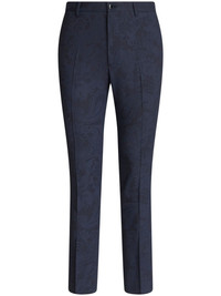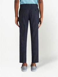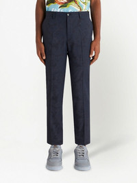 patterned-jacquard straight-leg trousers navy blue virgin wool blend patterned jacquard straight leg cropped mid-rise pressed crease concealed fly and button fastening slip pockets to the sides two rear button-fastening jetted pockets belt loops Made in Italy Composition Outer: Virgin Wool 99%, Elastane 1% Lining: Acetate 60%, Viscose 40%