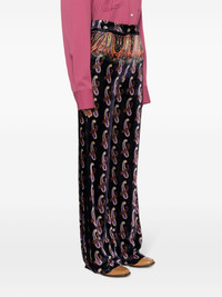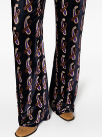 patterned-jacquard velvet trousers Highlights - Midnight blue/multicolour - Velvet - Patterned jacquard - High waist - Elasticated waistband - Wide leg - Two side slit pockets - Long length - Straight hem Made in Italy Composition Viscose 82%, Silk 18% SIZE & FIT Model measurements Height 5 ft 10 in(1.78 m) Bust/Chest 32.67 in(83 cm) Hips 35.43 in(90 cm) Waist 23.22 in(59 cm) FittingInformation Designed for a straight-leg fit, these trousers allow for a close fit at the waist and an unrestricted, comfortable fit over the leg The partially elasticated waistband offers increased movement and comfort at the waist Made from a midweight non-stretch fabric This piece fits true to size – take your usual size Measurement INSIDE LEG 33.85 in(86 cm) HIPS 39.37 in(100 cm) WAIST 28.34 in(72 cm) Washing instructions Dry Clean Only