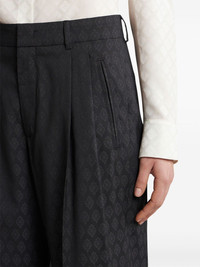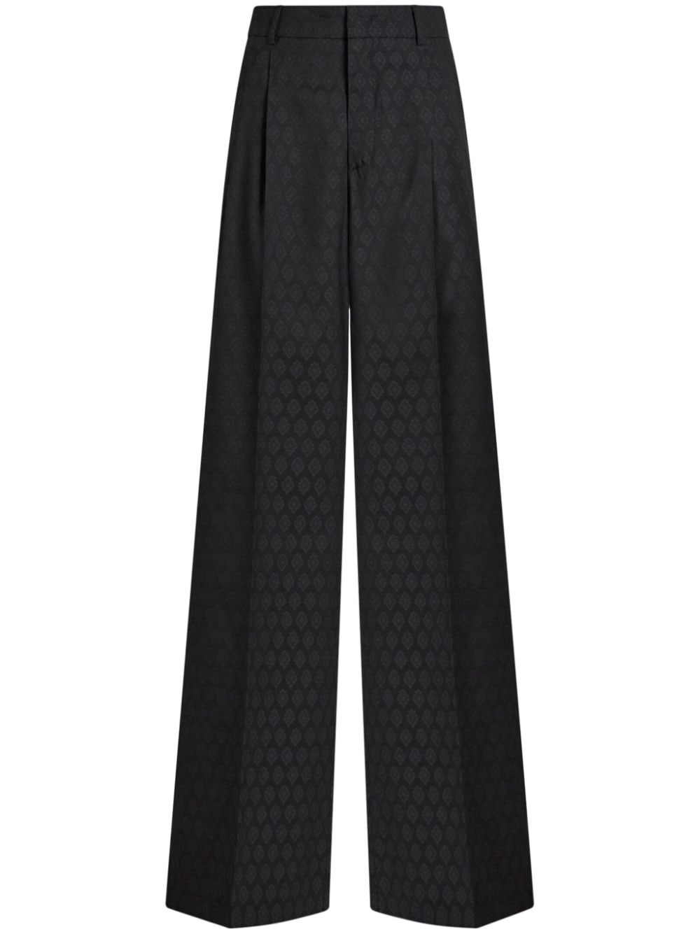 patterned-jacquard wool trousers Highlights - Black - Wool - Patterned jacquard - Pleat detailing - Pressed crease - Belt loops - Concealed front fastening - Two side jetted pockets - Two rear welt pockets - Wide leg Made in Italy Composition Wool 100%