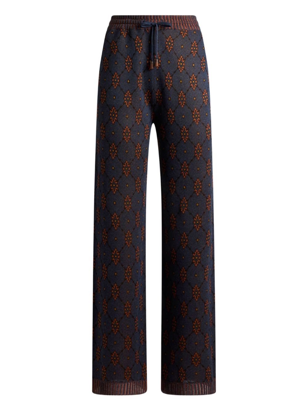 patterned knit trousers Highlights - Midnight blue - Diamond pattern - Floral motif - Drawstring waistband - Ribbed cuffs Made in Italy Composition Viscose 75%, Polyester 25% Washing instructions Read Manufacturer Guidelines