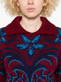 patterned sweater Highlights - Burgundy - Spread collar - Long sleeves - Ribbed cuffs and hem Made in Italy Composition Wool 100% SIZE & FIT Model measurements Height 5 ft 9 in(1.75 m) Bust/Chest 34.64 in(88 cm) Hips 36.61 in(93 cm) Waist 26.37 in(67 cm) FittingInformation Designed for a relaxed fit, this piece allows for comfort and movement when worn The ribbed hem offers a close, comfortable fit Made with a midweight knit, this piece offers some stretch
