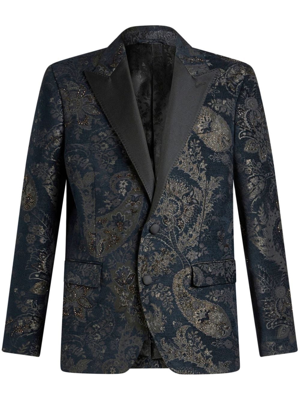 peak-lapel jacquard blazer Highlights - Midnight blue - Jacquard - Peak lapels - Front button fastening - Long sleeves - Two side flap pockets - Straight hem Made in Italy Composition Outer: Wool 60%, Mohair 40%