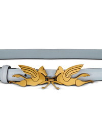 Pegaso-buckle leather belt Highlights - Alice blue - Leather - Smooth grain - Signature pegaso motif - Gold-tone buckle fastening - Adjustable fit - Pre-drilled holes Made in Italy Composition Outer: Calf Leather 100%