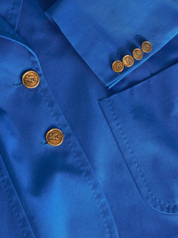 Pegaso-buttons stretch-cotton blazer Highlights - Cobalt blue - Stretch-cotton - Shoulder pads - Wide peak lapels - Front button fastening - Long sleeves - Buttoned cuffs - Chest patch pocket - Two front patch pockets - Central rear vent - Striped lining Made in Italy Composition Outer: Cotton 97%, Spandex/Elastane 3% Lining: Viscose 52%, Acetate 48% Washing instructions Read Manufacturer Guidelines