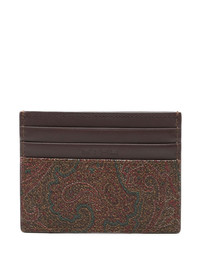 Pegaso-embroidered cardholder Highlights - Chocolate brown/multicolour - Cotton blend - Calf leather - Textured finish - Paisley print - Signature pegaso motif - Five card slots - Internal slip pocket - Debossed logo to the rear Made in Italy Composition Outer: PVC 100%, Calf Leather 100%, Cotton 76%, Polyester 24% Lining: Nylon 100% SIZE & FIT Measurement LENGTH 3.93 in(10 cm) WIDTH 3.14 in(8 cm)
