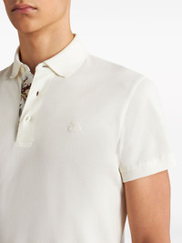 Pegaso-embroidered cotton polo shirt Highlights - Milk white - Cotton - Pique weave - Signature pegaso motif - Paisley-print band - Polo collar - Front button placket - Short sleeves - Straight hem Made in Italy Composition Cotton 100% SIZE & FIT Measurement CHEST 37.79 in(96 cm) FittingInformation Designed for a regular fit, this polo shirt offers a comfortable loose fit throughout the body Made from a midweight non-stretch fabric, this piece offers minimal elasticity when worn This piece fits true to size – take your usual size