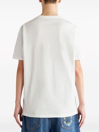 Pegaso-embroidered cotton T-shirt Highlights - Eggshell white - Cotton - Jersey texture - Signature pegaso motif - Floral embroidery - Crew neck - Short sleeves - Straight hem Made in Italy Composition Polyester 100%, Cotton 100% SIZE & FIT FittingInformation Designed to be unstructured, offering a loose fit throughout Made from a midweight non-stretch fabric, this piece offers minimal elasticity when worn This piece fits true to size – take your usual size
