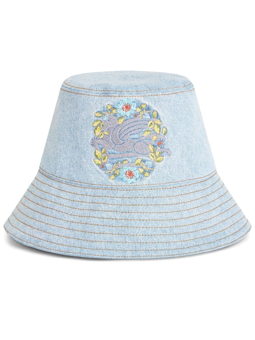 Pegaso embroidered denim bucket hat Highlights - Light blue/multicolour - Cotton - Denim - Logo patch to the rear - Signature pegaso motif - Embroidered logo - Flexible brim Made in Italy Composition Cotton 100%