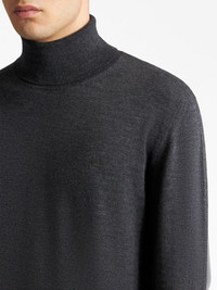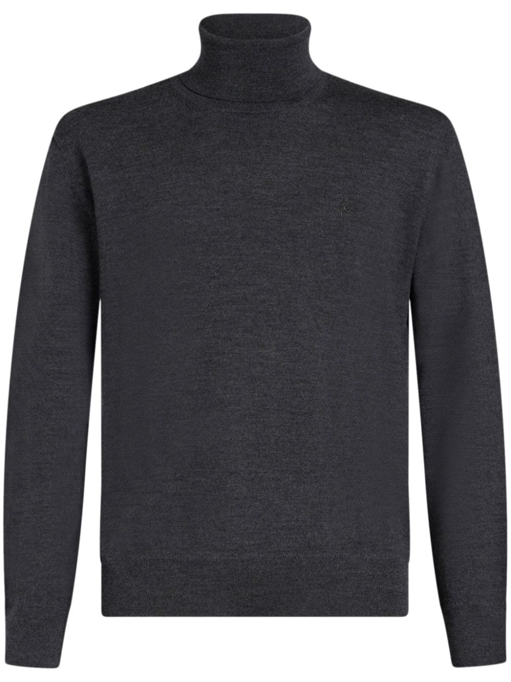Pegaso-embroidered high-neck jumper Highlights - Anthracite grey - Virgin wool - Fine knit - Melange effect - Signature pegaso embroidered logo at the chest - High neck - Long sleeves - Ribbed cuffs and hem - Straight hem Made in Italy Composition Virgin Wool 100% SIZE & FIT FittingInformation Designed for a regular fit, offering a comfortable loose fit throughout the body Made with a midweight knit, this piece offers some stretch This piece fits true to size – take your usual size Measurement CHEST 48.81 in(124 cm) SLEEVE LENGTH 36.22 in(92 cm) Shoulder Width 20.47 in(52 cm)