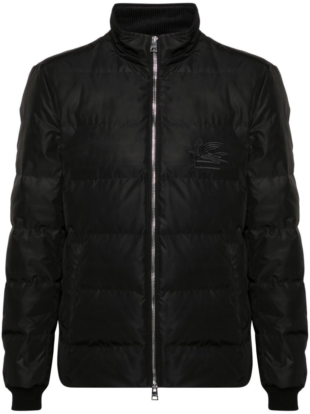 Pegaso-embroidered puffer jacket Highlights - Black - Goose down - Padded design - Quilted - Signature pegaso embroidery - Front two-way zip fastening - Corduroy-lined collar - Long sleeves - Ribbed cuffs - Two side welt pockets - Floral-print lining - Straight hem Imported Composition Outer: Polyamide 100%, Cotton 100% Lining: Polyester 100%, Goose Down 85%, Feather 15% SIZE & FIT Model measurements Height 6 ft 2 in(1.87 m) Bust/Chest 38.18 in(97 cm) Hips 36.61 in(93 cm) Waist 29.13 in(74 cm) FittingInformation Designed for a regular fit, allowing for a comfortably loose fit throughout the body The ribbed hem offers a close, comfortable fit Made from a padded non-stretch fabric, giving it no natural elasticity