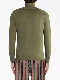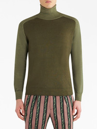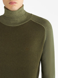 Pegaso-embroidered roll-neck jumper Highlights - Olive green - Virgin wool - Knitted construction - Tonal design - Embroidered logo at the chest - Signature pegaso motif - Long sleeves - High neck - Ribbed cuffs and hem Made in Italy Composition Virgin Wool 100% SIZE & FIT Measurement CHEST 40.94 in(104 cm) SLEEVE LENGTH 33.07 in(84 cm) FittingInformation Designed for a regular fit, offering a comfortable loose fit throughout the body Made with a lightweight knit, this piece offers some stretch This piece fits true to size – take your usual size