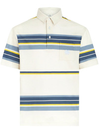 Pegaso-embroidered striped polo shirt Highlights - White/multicolour - Cotton - Pique weave - Horizontal stripe pattern - Embroidered logo at the chest - Signature pegaso motif - Polo collar - Front button placket - Short sleeves - Chest patch pocket - Straight hem Made in Italy Composition Cotton 100% SIZE & FIT FittingInformation Designed for a loose fit, this polo shirt offers additional room throughout Made from a midweight non-stretch fabric, this piece offers minimal elasticity when worn This piece fits true to size – take your usual size