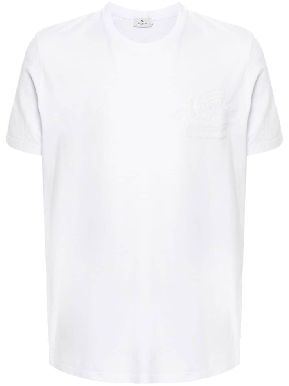 Pegaso-embroidered T-shirt Highlights - White - Cotton - Lightweight jersey - Signature pegaso embroidery at the chest - Crew neck - Short sleeves - Straight hem Made in Italy Composition Polyester 100%, Cotton 100% SIZE & FIT Model measurements Height 6 ft 1 in(1.85 m) Bust/Chest 38.58 in(98 cm) Hips 37 in(94 cm) Waist 30.31 in(77 cm) FittingInformation Designed for a regular fit allowing for a comfortably loose fit throughout the body Made from a midweight non-stretch fabric, this piece offers minimal elasticity when worn This piece fits true to size – take your usual size