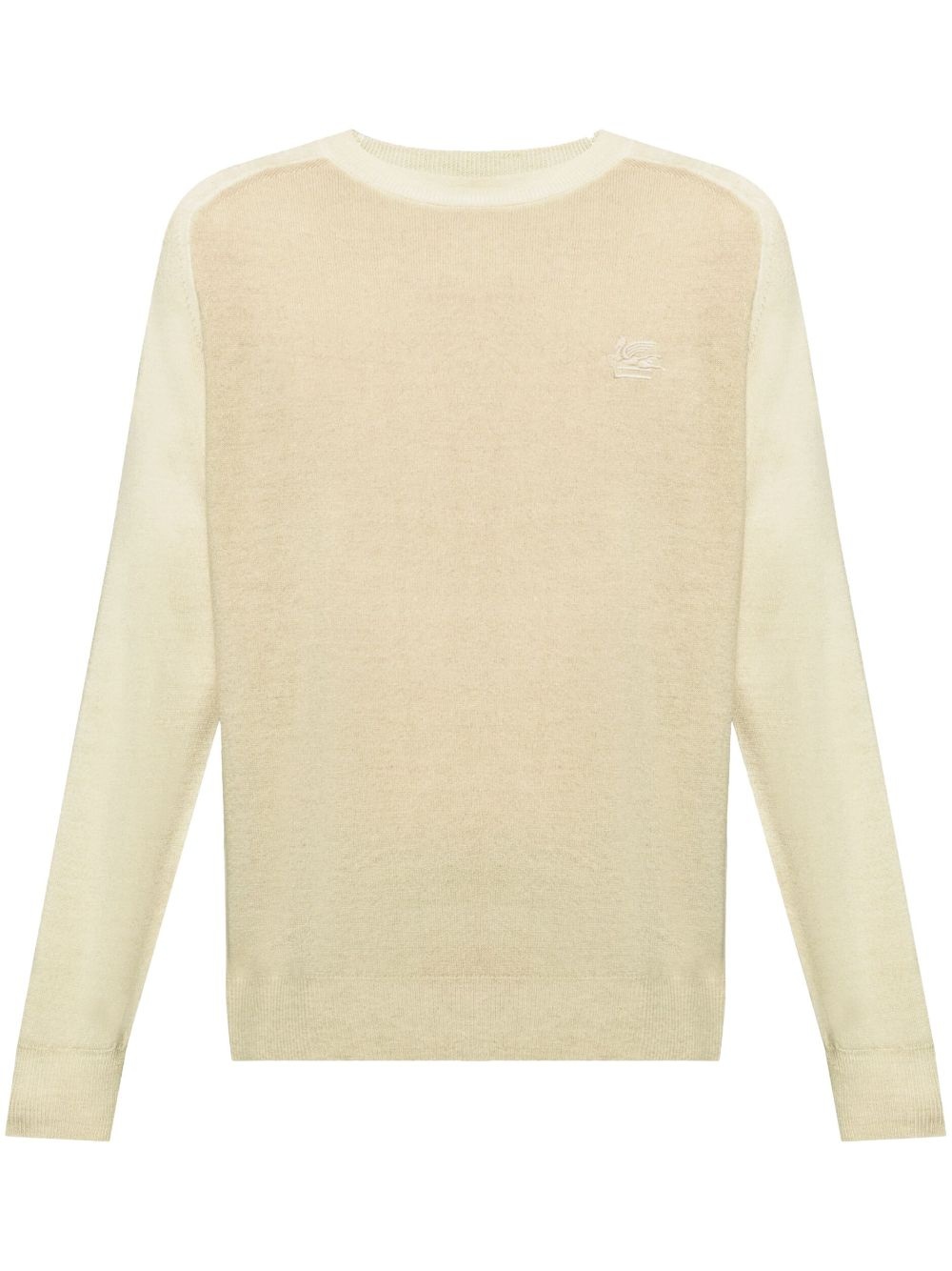Pegaso-embroidered wool jumper Highlights - Beige - Wool - Fine knit - Signature pegaso motif - Crew neck - Long sleeves - Ribbed cuffs and hem - Straight hem Made in Italy Composition Wool 100% SIZE & FIT Measurement CHEST 45.66 in(116 cm) SLEEVE LENGTH 34.64 in(88 cm)