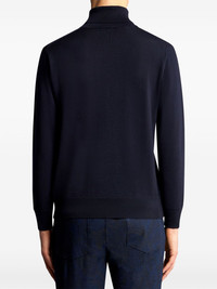 Pegaso-embroidered wool jumper Highlights - Navy blue - Wool - Fine ribbed - Signature pegaso motif - High neck - Long sleeves - Straight hem Made in Italy Composition Wool 100% SIZE & FIT Measurement CHEST 39.37 in(100 cm) SLEEVE LENGTH 32.28 in(82 cm) Shoulder Width 14.96 in(38 cm) FittingInformation Designed for a relaxed fit, this piece allows for comfort and movement when worn The ribbed hem offers a close, comfortable fit Made with a midweight knit, this piece offers some stretch This piece fits true to size – take your usual size