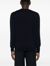 wool jacquard sweater Highlights - Navy blue - Wool - Knitted construction - Crew neck - Long sleeves - Ribbed cuffs and hem - Signature pegaso motif Made in Italy Composition Wool 100% SIZE & FIT Model measurements Height 6 ft 2 in(1.87 m) Bust/Chest 36.41 in(92.5 cm) Hips 37 in(94 cm) Waist 29.52 in(75 cm) FittingInformation Designed for a regular fit, offering a comfortable loose fit throughout the body The ribbed hem offers a close, comfortable fit Made with a midweight knit, this piece offers some stretch This piece fits true to size – take your usual size
