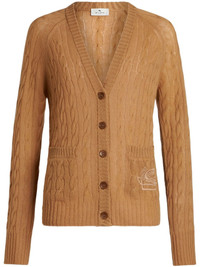 Pegaso-motif cable-knit cardigan Highlights - Light brown - Cashmere - Cable knit - Signature pegaso motif - V-neck - Front button fastening - Long sleeves - Two front patch pockets - Straight hem Made in Italy Composition Cashmere 100% SIZE & FIT FittingInformation Designed for a relaxed fit, this piece allows for comfort and movement when worn Made with a midweight knit, this piece offers some stretch