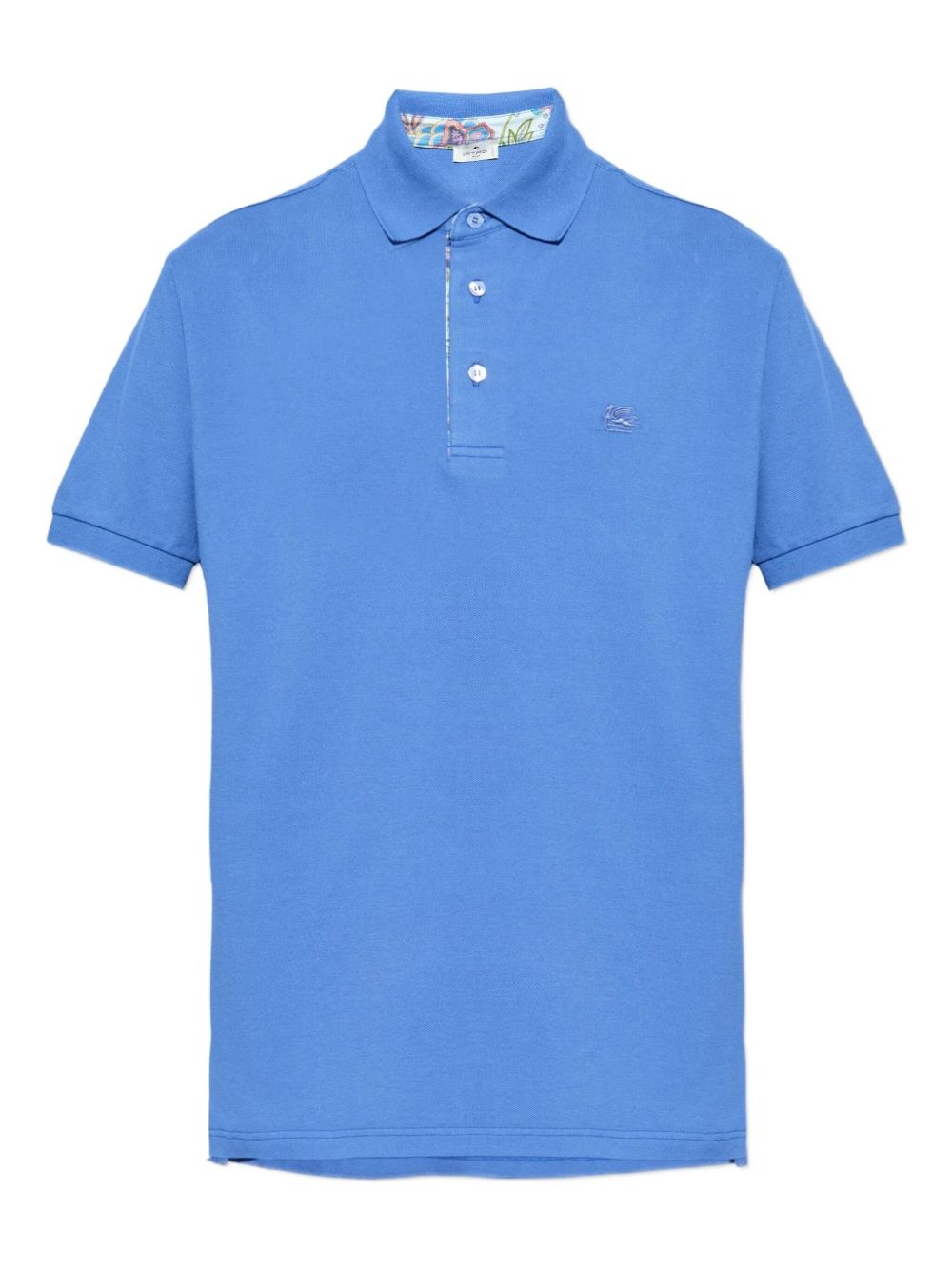 Pegaso-motif cotton polo shirt Highlights - Blue - Cotton - Short sleeves - Three button placket - Signature pegaso motif - Patterned collar Made in Italy Composition Cotton 100% Washing instructions Read Manufacturer Guidelines