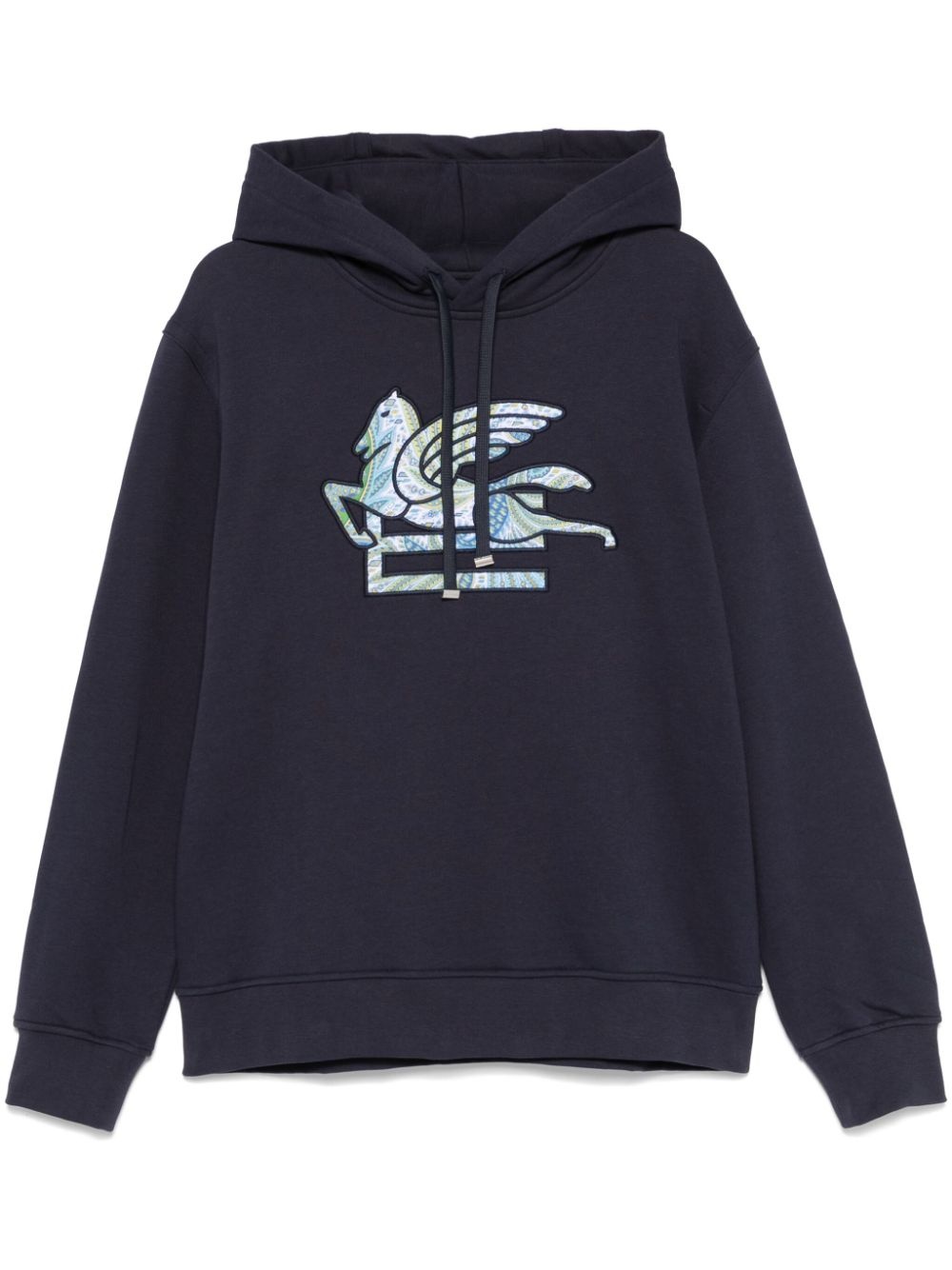 Pegaso-motif hoodie Highlights - Navy blue - Drawstring hood - Ribbed cuffs and hem - Drop shoulder Made in Italy Composition Cotton 90%, Polyester 10% SIZE & FIT Model measurements Height 6 ft 2 in(1.87 m) Bust/Chest 37.79 in(96 cm) Hips 37.79 in(96 cm) Waist 30.31 in(77 cm) FittingInformation Designed for a relaxed fit, this piece allows for comfort and movement when worn The ribbed hem offers a close, comfortable fit Made from a lightweight stretch fabric, this piece offers elasticity and flexibility when worn