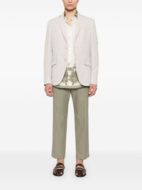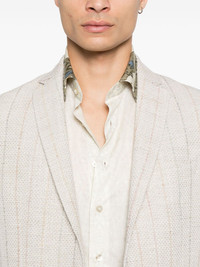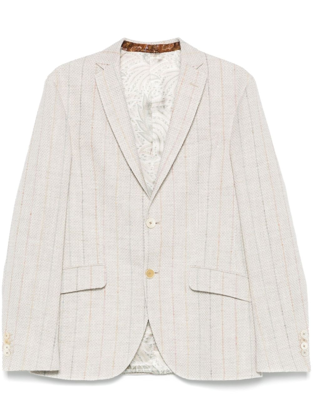 pinstripe blazer Highlights - Light beige - Front button fastening - Buttoned cuffs - Jetted chest pocket - Two front flap pockets Made in Italy Composition Outer: Cotton 56%, Wool 22%, Linen/Flax 21%, Silk 1% Lining: Acetate 100%, Viscose 100% SIZE & FIT Model measurements Height 6 ft 1 in(1.85 m) Bust/Chest 35.82 in(91 cm) Hips 37.79 in(96 cm) Waist 29.13 in(74 cm) FittingInformation Designed for a slim fit, offering a comfortable fit that sits just away from the body The vented hem offers movement at the rear Made from a midweight non-stretch fabric